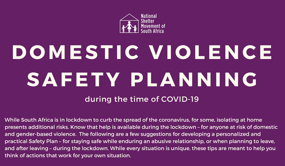 A practical, personalized Domestic/Gender Based Violence Safety Plan during this time of Covid-19. A message brought to you as published by the National Shelter Movement of South Africa. Excellent.